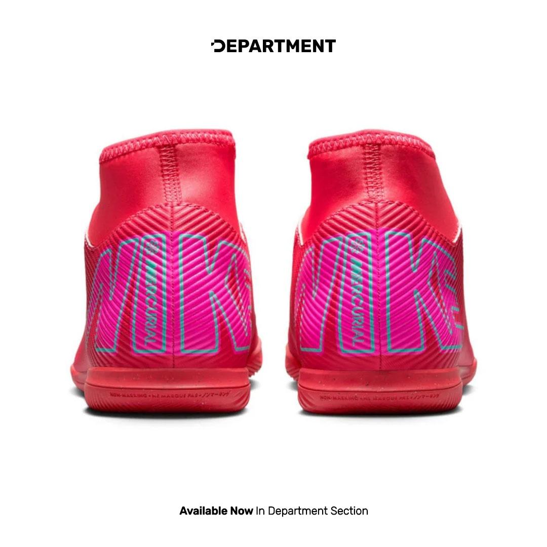 NIKE Mercurial Superfly 10 Club IC Futsal Pria:Rasakan kecepatan eksplosif. Upper sintetis bertekstur meningkatkan sentuhan bola. Sol karet non-marking memberikan traksi superior di lapangan indoor. Desain dinamis, ringan, dan responsif untuk kelincahan maksimal. Dominasi permainan dengan gaya.